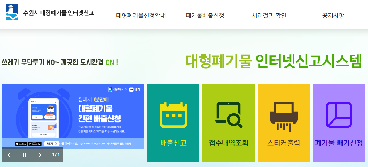 수원시에 거주하신다면 대형 폐기물 배출은 더 이상 고민이 아닙니다.
